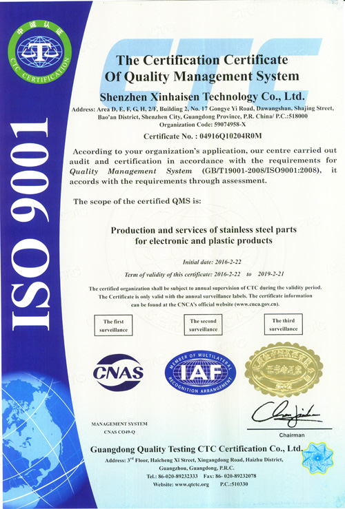 深圳市鑫海森科技有限公司成立于2006年,坐落于中國(guó)廣東省深圳市沙井鎮(zhèn),地理位置優(yōu)越,對(duì)于我司原物料采購(gòu)及協(xié)作加工有無(wú)法比擬的迅速性和高品質(zhì)性。 我司主要進(jìn)行精密五金件的加工,產(chǎn)品涉及的范圍相當(dāng)廣泛,涵蓋了通訊、聲學(xué)、光學(xué)、醫(yī)療、安防、機(jī)械、航空、陸運(yùn)工具、家電等等領(lǐng)域。本公司目前產(chǎn)能1000^2全自動(dòng)生產(chǎn)線6條。加工厚度從0.02mm-1.5mm產(chǎn)品的精度可以做到... 【查看詳情】